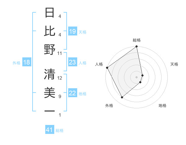 日比野 清美ーさんを姓名の画数から五運を鑑定