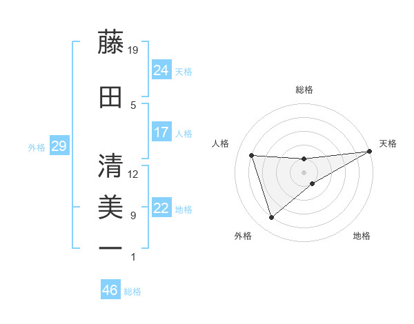 藤田 清美ーさんを姓名の画数から五運を鑑定