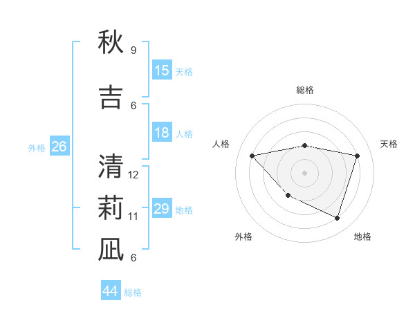 秋吉 清莉凪さんを姓名の画数から五運を鑑定