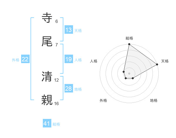 寺尾 清親さんの総格は41画の5点!