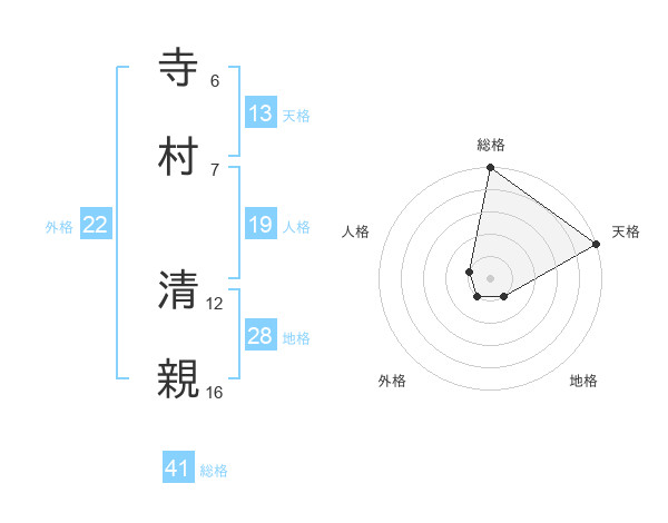 寺村 清親さんの総格は41画の5点!