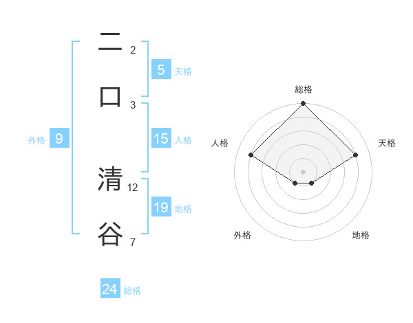 二口 清谷さんの総格は24画の5点!
