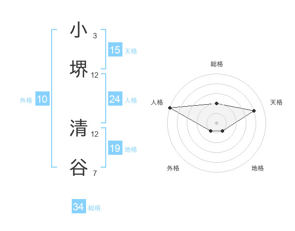 小堺 清谷さんの総格は34画の2点!