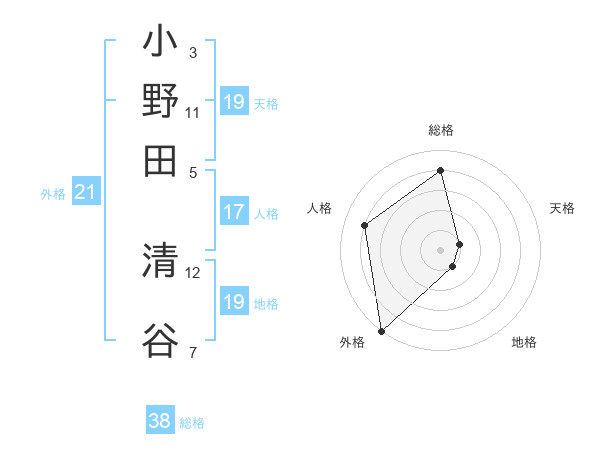 小野田 清谷さんを姓名の画数から五運を鑑定
