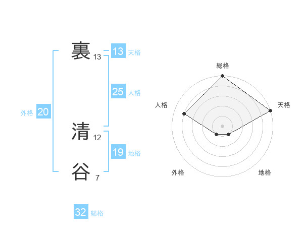 裏 清谷さんの総格は32画の5点!