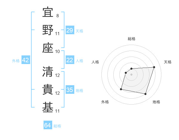 宜野座 清貴基さんを姓名の画数から五運を鑑定