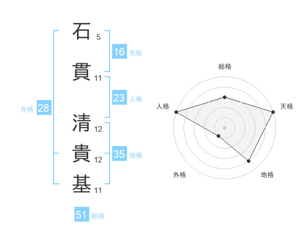 石貫 清貴基さんを姓名の画数から五運を鑑定