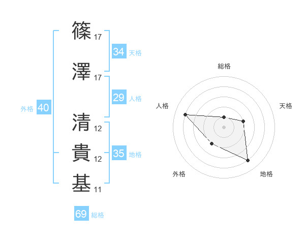 篠澤 清貴基さんを姓名の画数から五運を鑑定