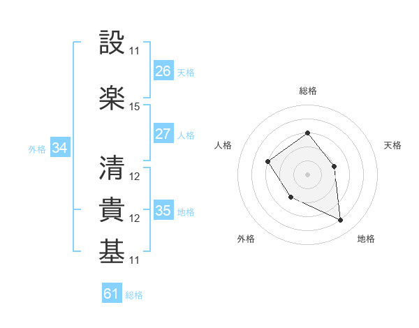 設楽 清貴基さんを姓名の画数から五運を鑑定