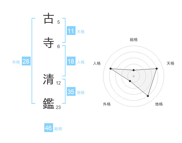 古寺 清鑑さんの総格は46画の1点!