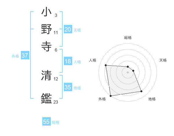 小野寺 清鑑さんの総格は55画の1点!
