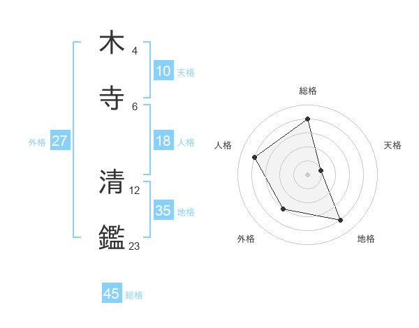 木寺 清鑑さんの総格は45画の4点!