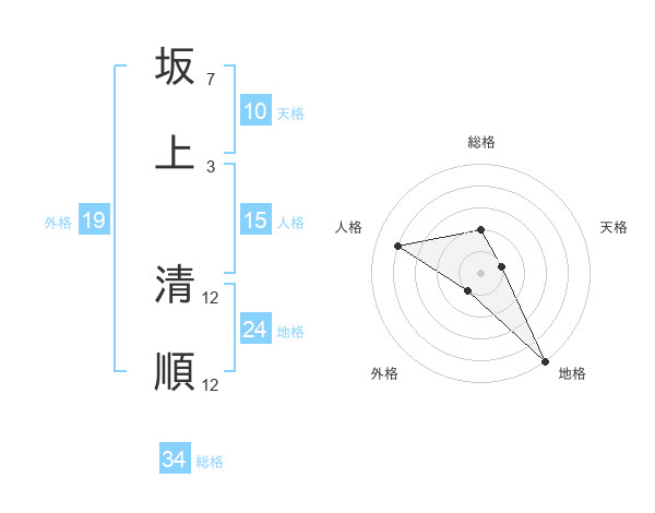 坂上 清順さんの総格は34画の2点!