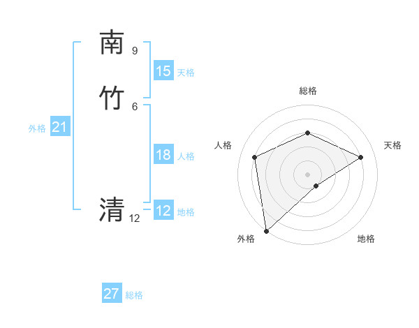 南竹 清さんの外格は21画の5点!