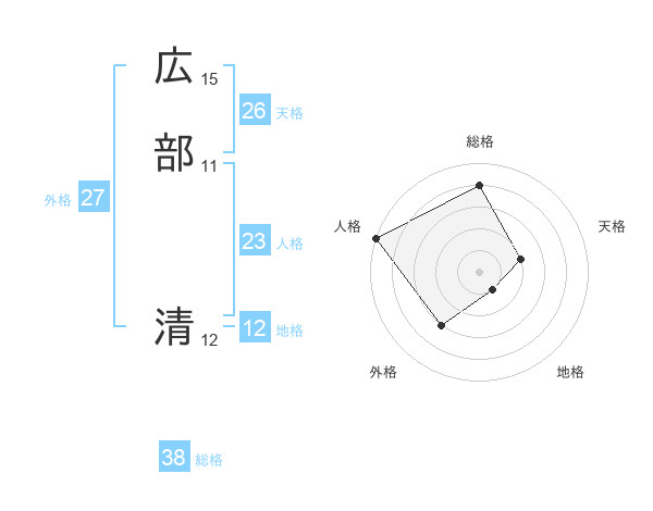 広部 清さんの総格は38画の4点!