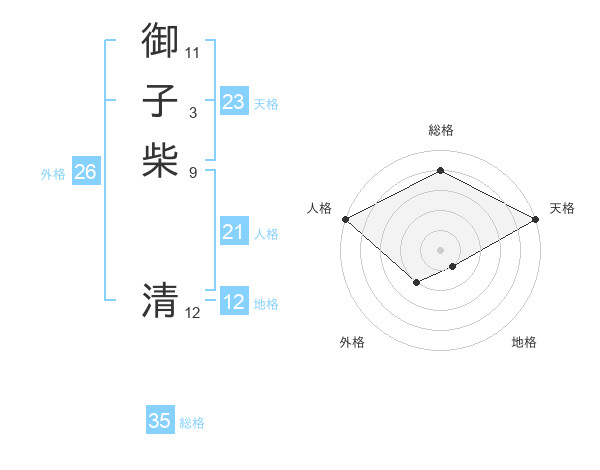 御子柴 清さんの総格は35画の4点!