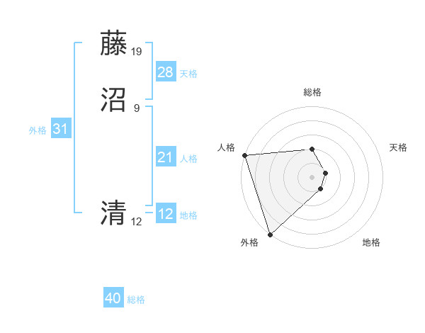 藤沼 清さんの外格は31画の5点!