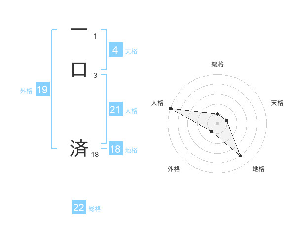 一口 済さんの総格は22画の1点!