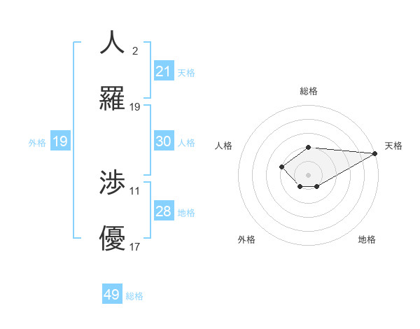 人羅 渉優さんの天格は21画の5点!