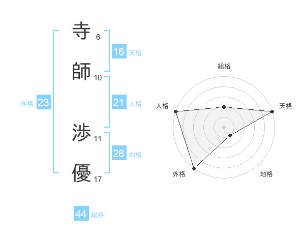 寺師 渉優さんの総格は44画の2点!