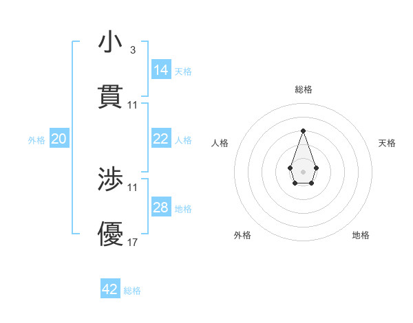 小貫 渉優さんを姓名の画数から五運を鑑定
