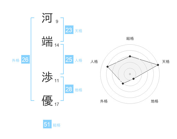 河端 渉優さんの総格は51画の3点!