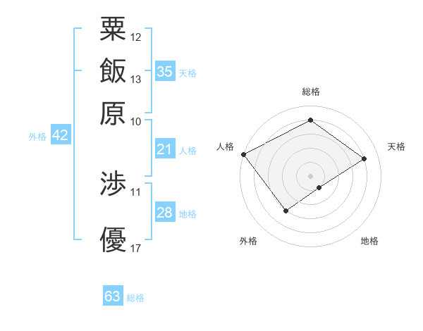 粟飯原 渉優さんの天格は35画の4点!
