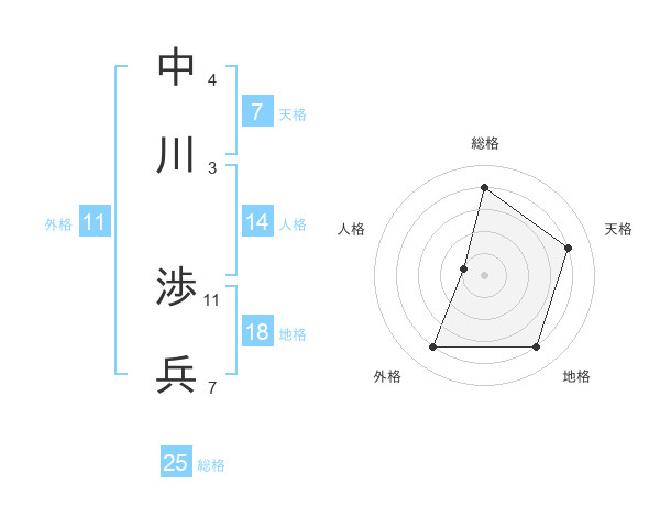 中川 渉兵さんを姓名の画数から五運を鑑定