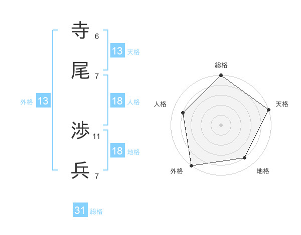 寺尾 渉兵さんの天格は13画の5点!