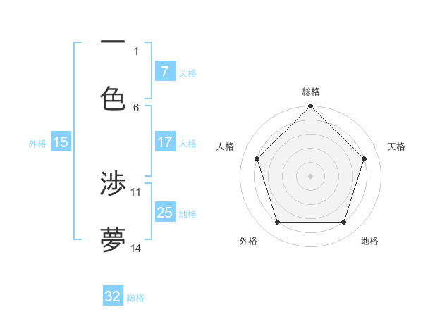 一色 渉夢さんの総格は32画の5点