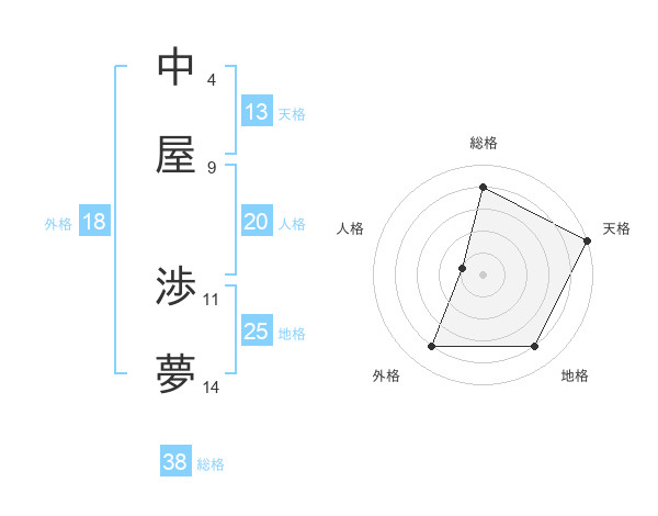 中屋 渉夢さんの総格は38画の4点!