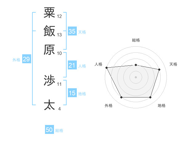 粟飯原 渉太さんを姓名の画数から五運を鑑定