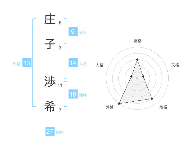 庄子 渉希さんを姓名の画数から五運を鑑定