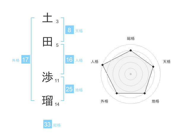 土田 渉瑠さんを姓名の画数から五運を鑑定