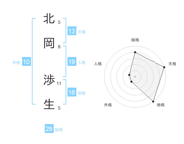 北岡 渉生さんを姓名の画数から五運を鑑定
