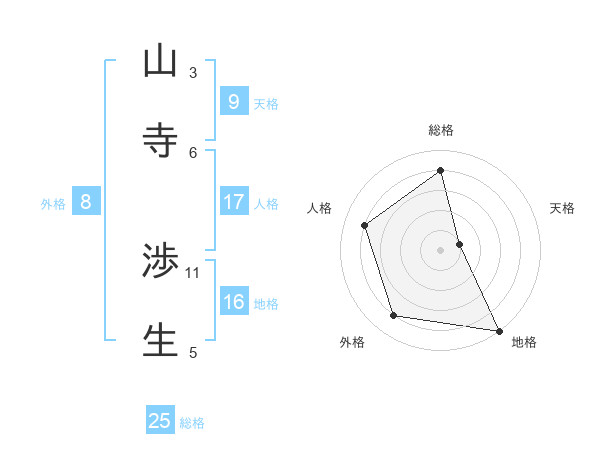 山寺 渉生さんの地格は16画の5点!