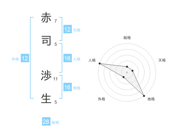 赤司 渉生さんを姓名の画数から五運を鑑定