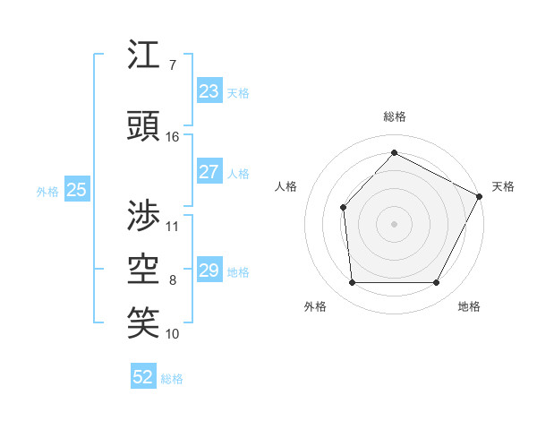 江頭 渉空笑さんを姓名の画数から五運を鑑定