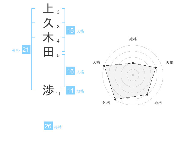 上久木田 渉さんを姓名の画数から五運を鑑定