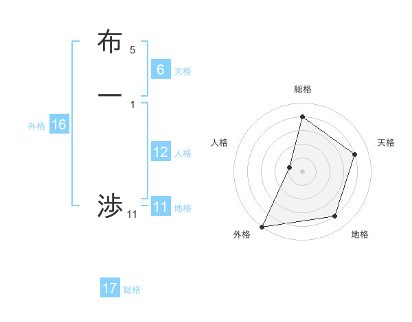 布一 渉さんの総格は17画の4点!