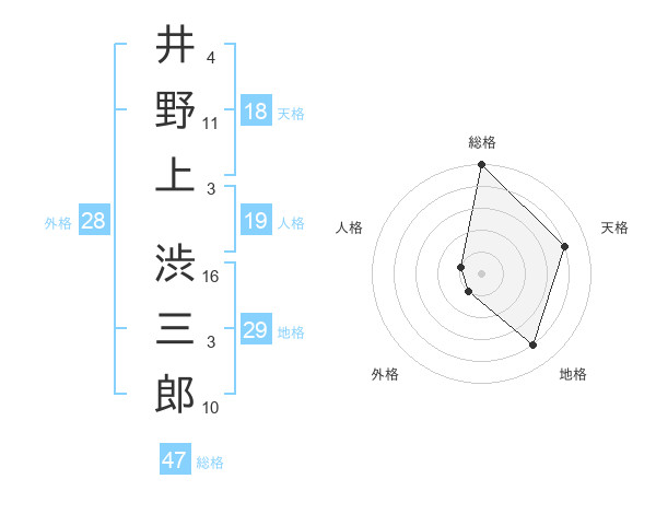 井野上 渋三郎さんを姓名の画数から五運を鑑定