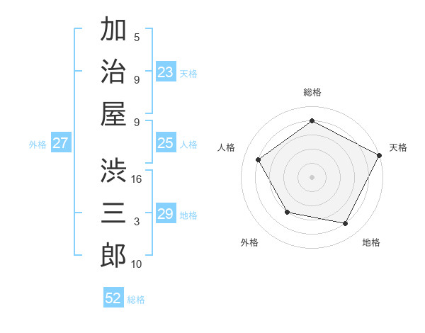 加治屋 渋三郎さんの総格は52画の4点