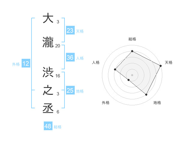 大瀧 渋之丞さんの天格は23画の5点
