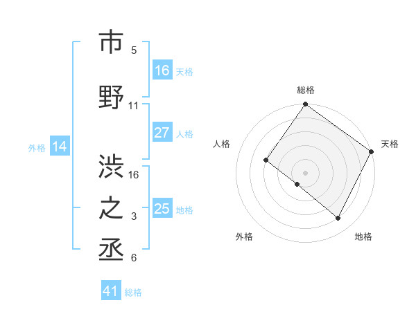 市野 渋之丞さんの総格は41画の5点