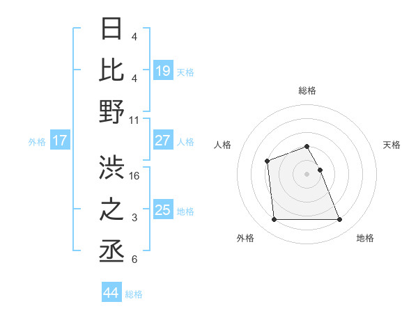 日比野 渋之丞さんを姓名の画数から五運を鑑定
