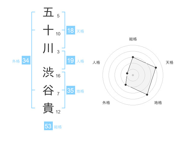 五十川 渋谷貴さんを姓名の画数から五運を鑑定