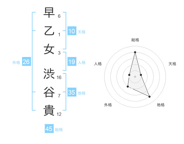 早乙女 渋谷貴さんを姓名の画数から五運を鑑定