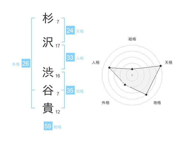 杉沢 渋谷貴さんを姓名の画数から五運を鑑定