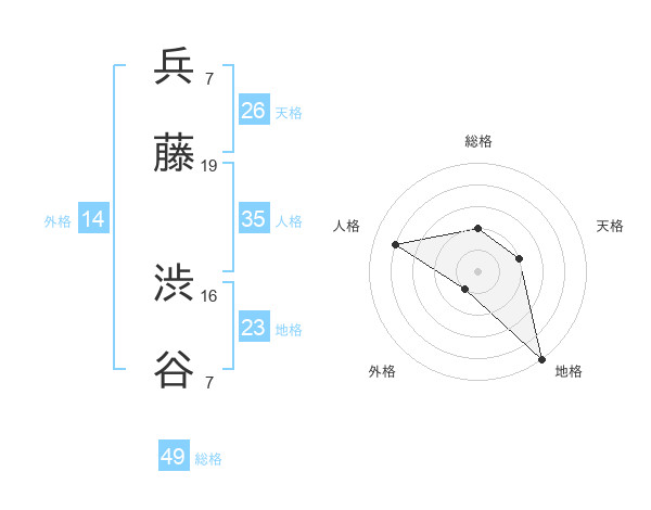 兵藤 渋谷さんを姓名の画数から五運を鑑定