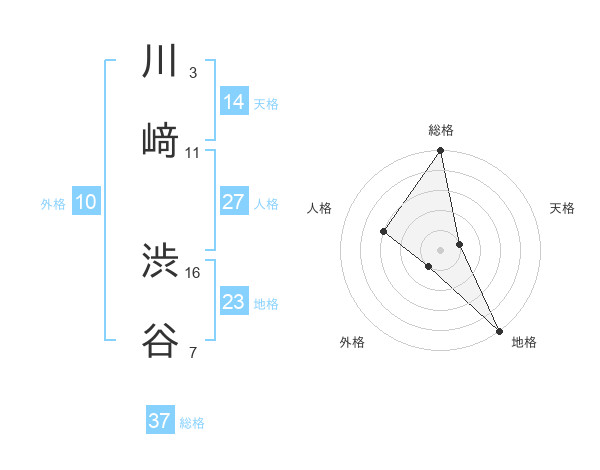 川﨑 渋谷さんを姓名の画数から五運を鑑定